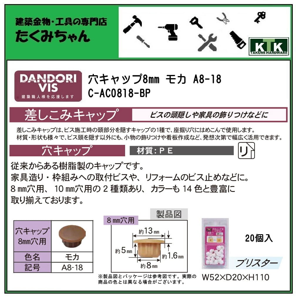 DANDORI VIS ダンドリビス 差しこみキャップ 穴キャップ モカ A8-18 C-AC0818-BP 20個入 ブリスター