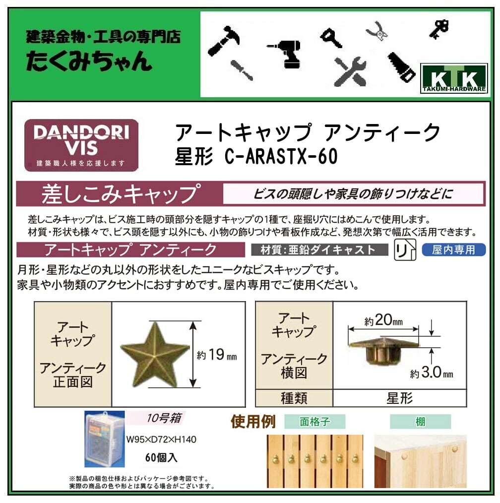 DANDORI VIS ダンドリビス 差しこみキャップ アートキャップ アンティーク 星形 C-ARASTX-60 60個入 10号箱