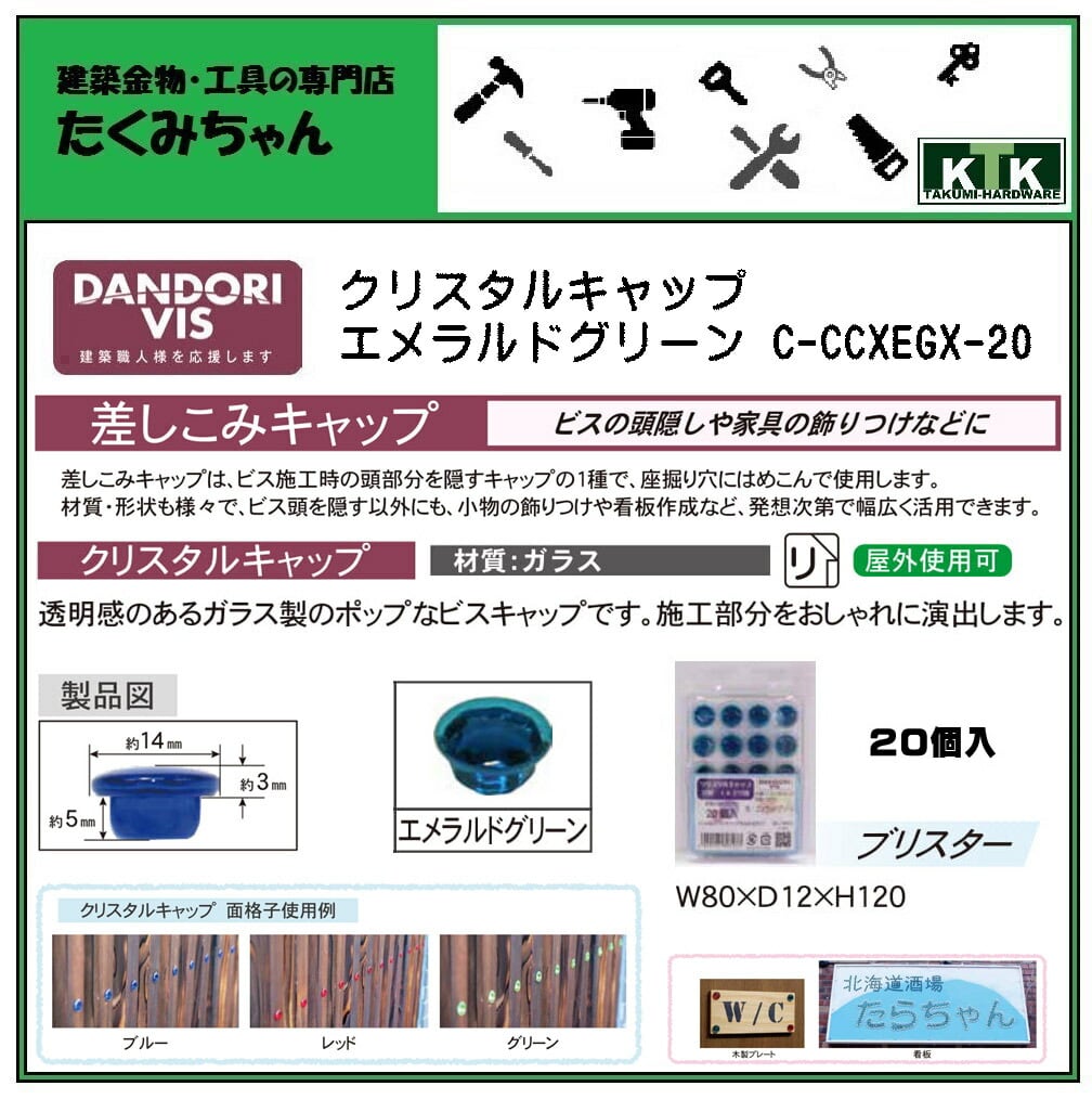 DANDORI VIS ダンドリビス 差しこみキャップ クリスタルキャップ エメラルドグリーン C-CCXEGX-BP 8個入 ブリスター