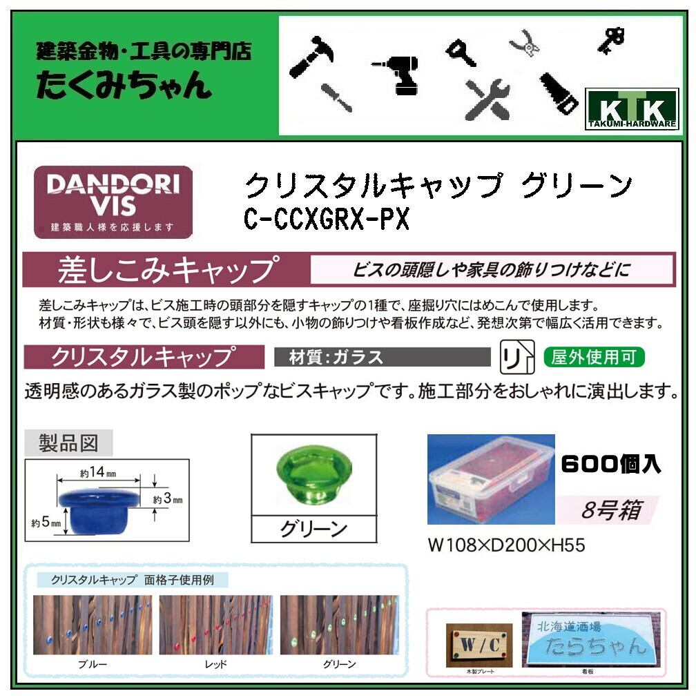DANDORI VIS ダンドリビス 差しこみキャップ クリスタルキャップ グリーン C-CCXGRX-PX 600個入 8号箱
