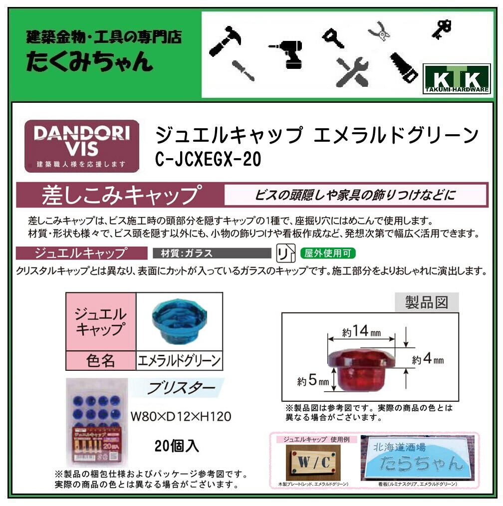 DANDORI VIS ダンドリビス 差しこみキャップ ジュエルキャップ エメラルドグリーン C-JCXEGX-20 20個入 ブリスター