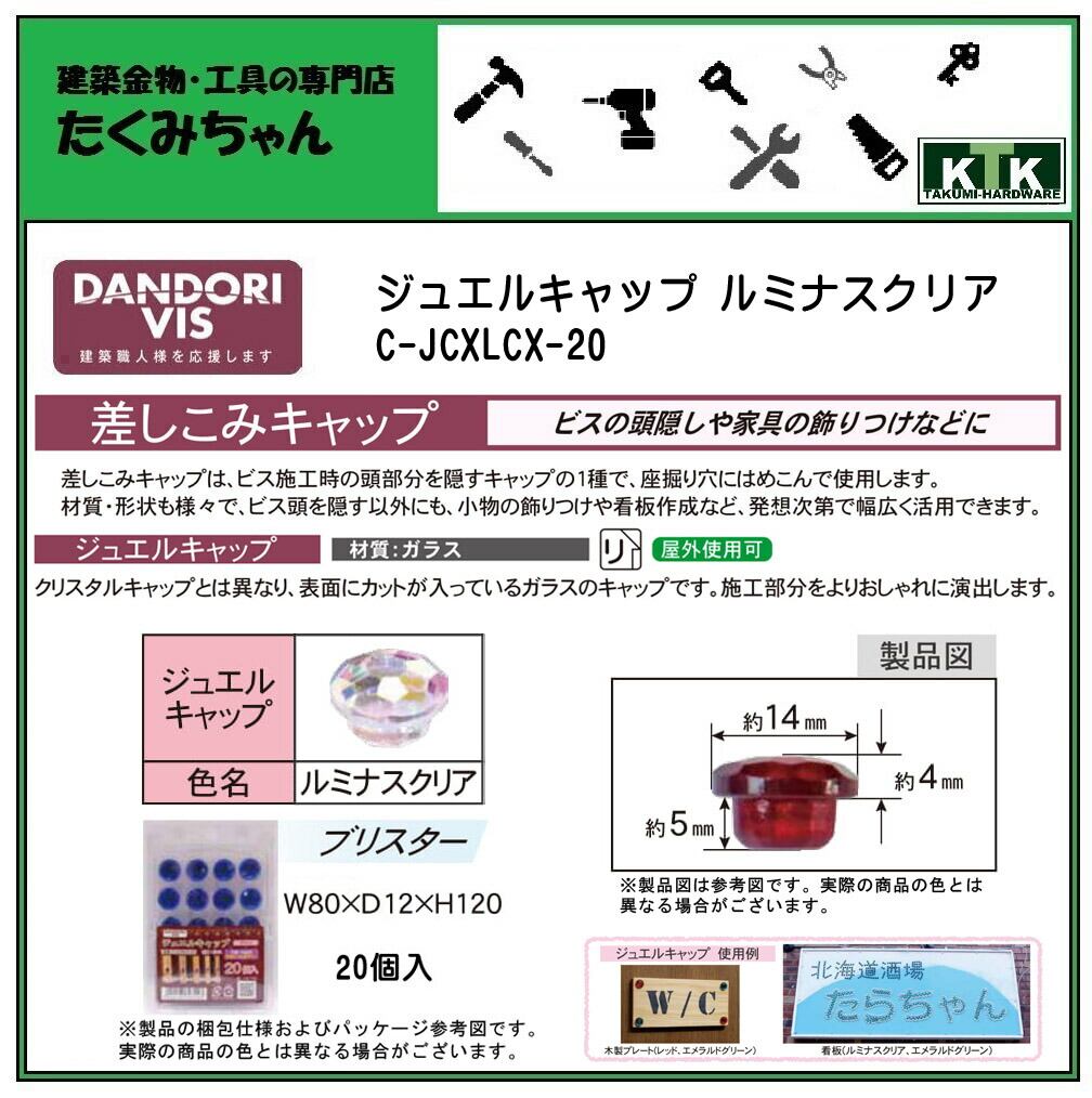 DANDORI VIS ダンドリビス 差しこみキャップ ジュエルキャップ ルミナスクリア C-JCXLCX-20 20個入 ブリスター