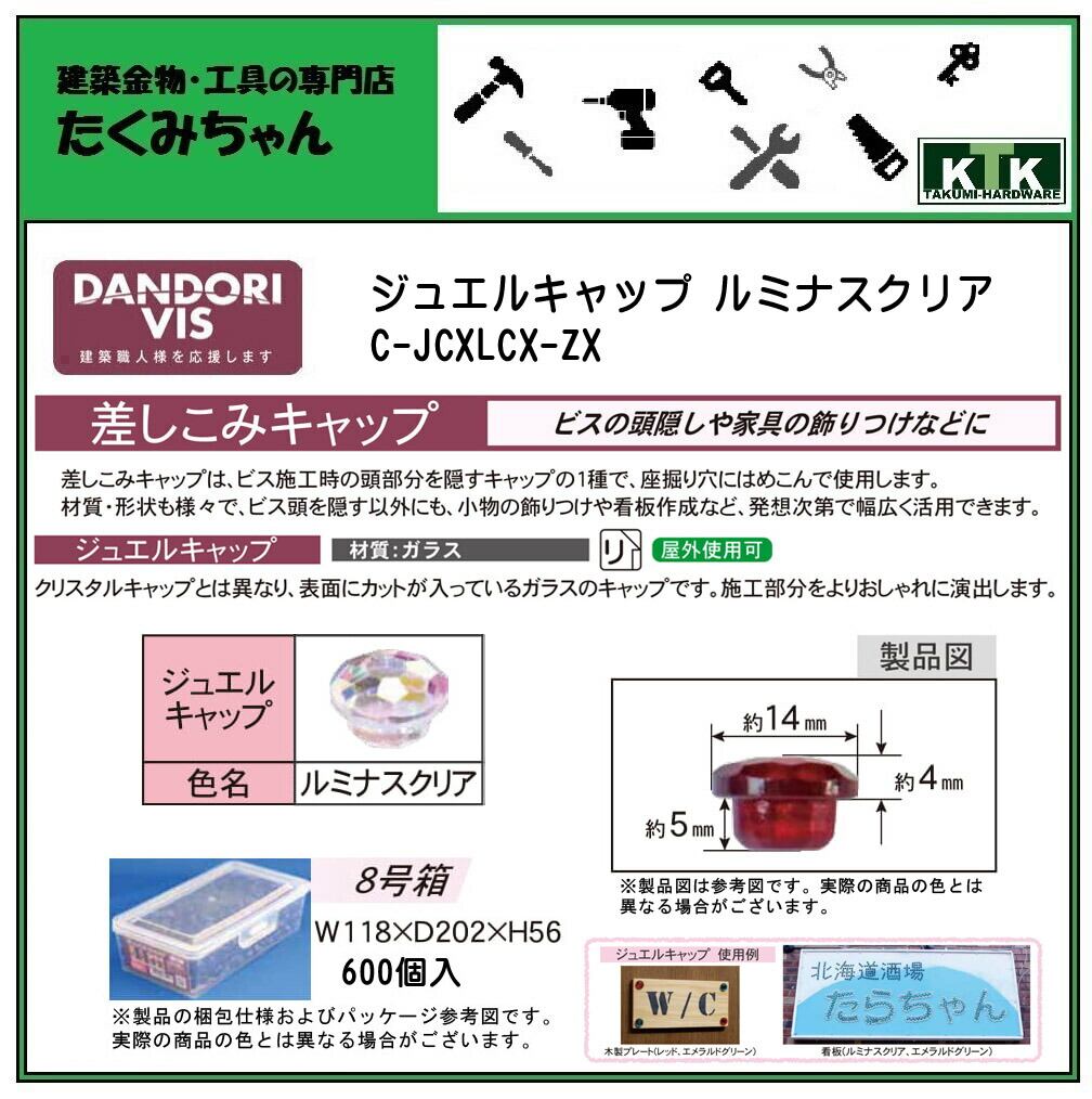 DANDORI VIS ダンドリビス 差しこみキャップ ジュエルキャップ ルミナスクリア C-JCXLCX-ZX 600個入 8号箱