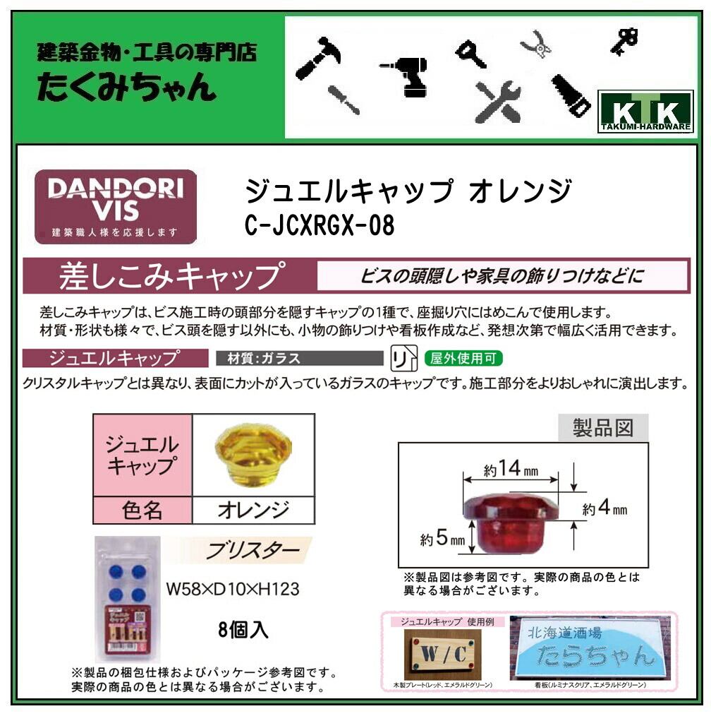 DANDORI VIS ダンドリビス 差しこみキャップ ジュエルキャップ オレンジ C-JCXRGX-08 8個入 ブリスター