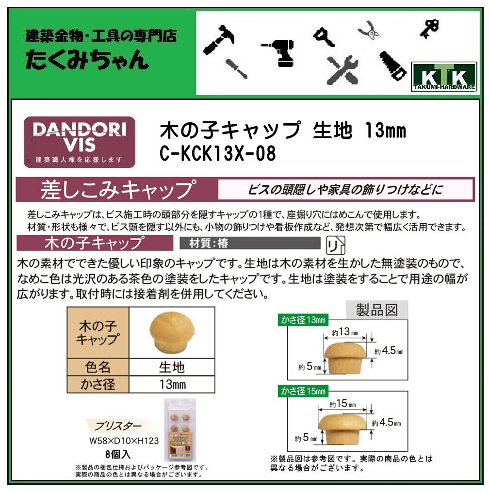DANDORI VIS ダンドリビス 差しこみキャップ 木の子キャップ 生地 13mm C-KCK13X-08 8個入 ブリスター