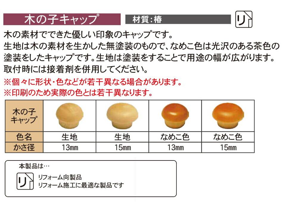 【差しこみキャップ 木の子キャップ 生地 13mm】