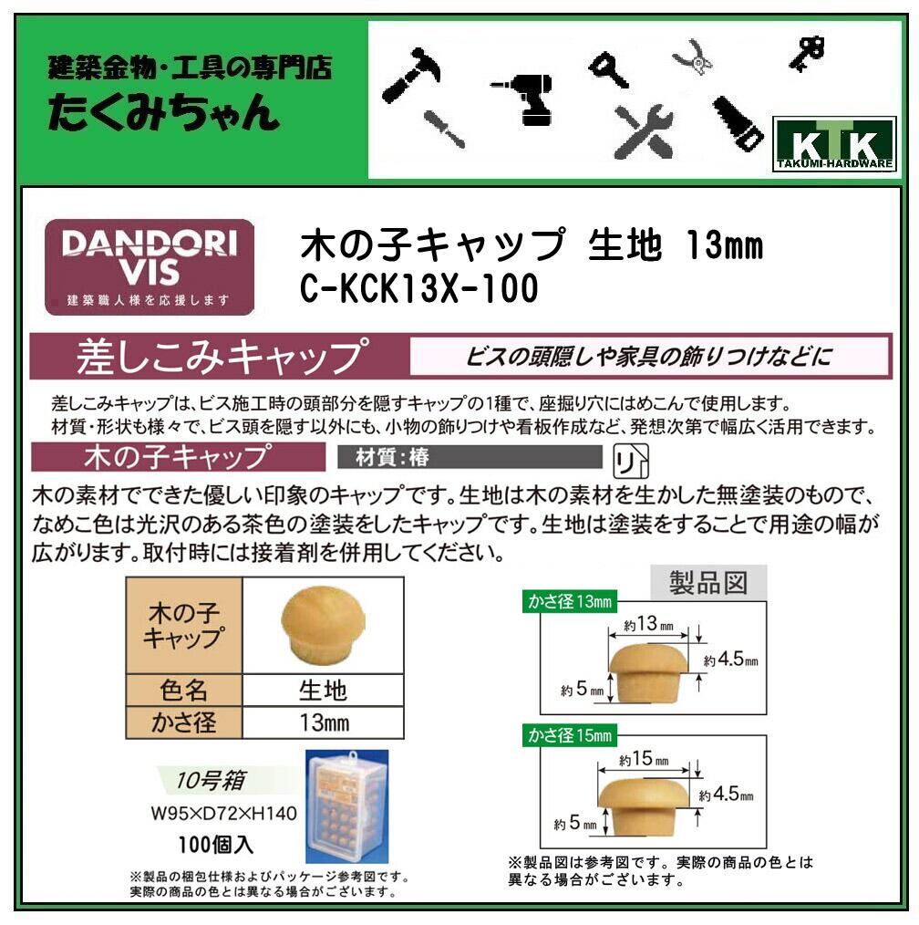 DANDORI VIS ダンドリビス 差しこみキャップ 木の子キャップ 生地 13mm C-KCK13X-100 100個入 10号箱