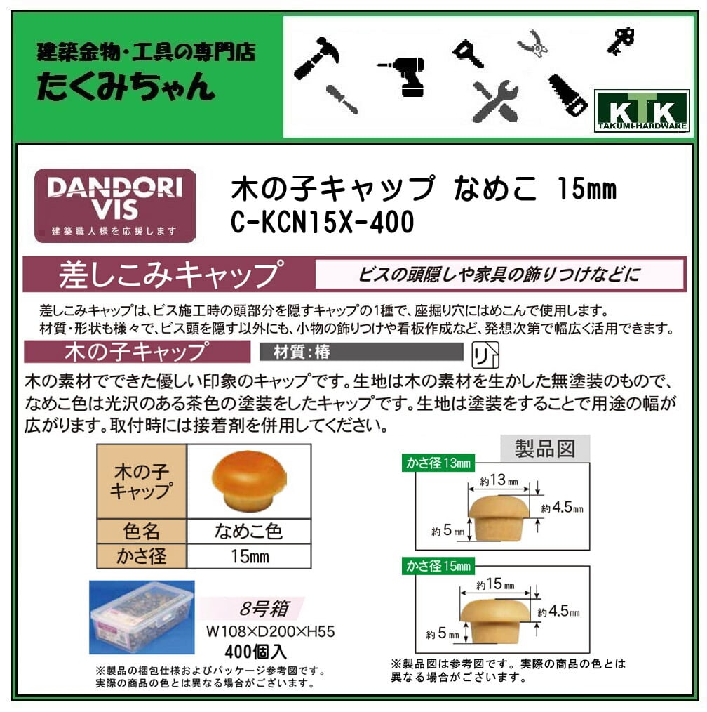 DANDORI VIS ダンドリビス 差しこみキャップ 木の子キャップ なめこ 15mm C-KCN15X-400 400個入 8号箱