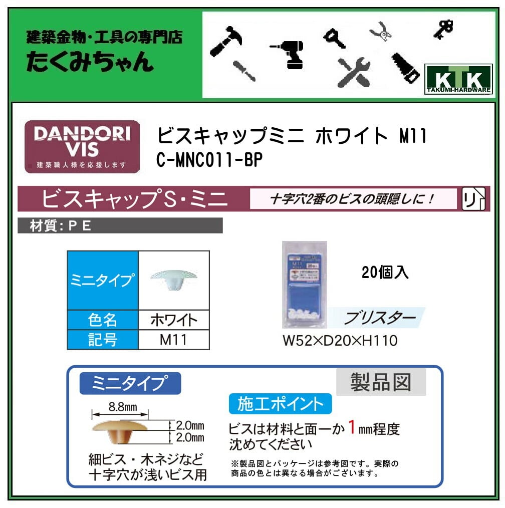 DANDORI VIS ダンドリビス ビスキャップミニ ホワイト M11 C-MNC011-BP 20個入 ブリスター