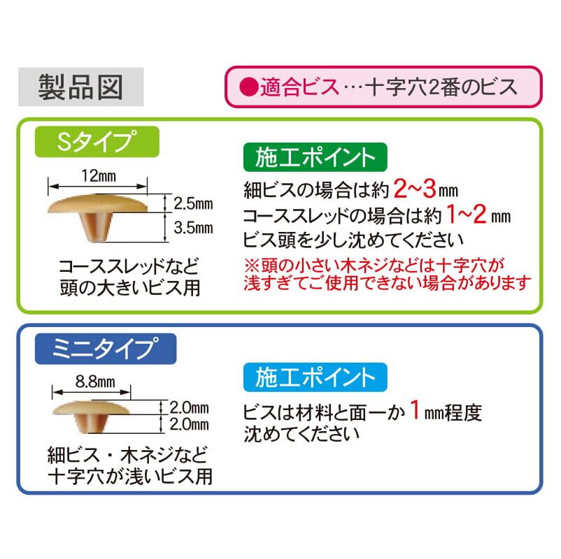 ・ミニタイプは細ビス・木ネジなど十字穴が浅いビス用です。