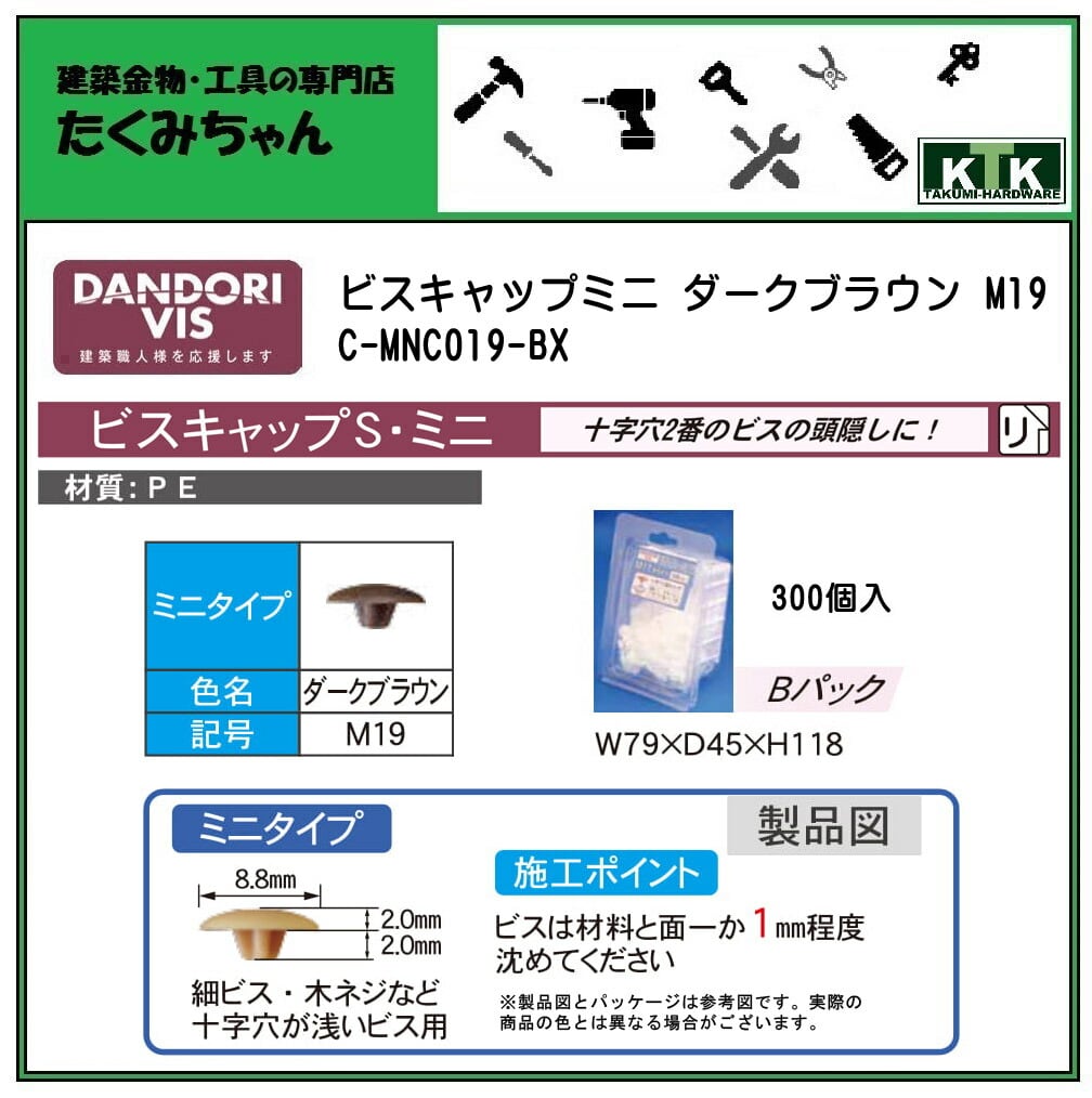 DANDORI VIS ダンドリビス ビスキャップミニ ダークブラウン M19 C-MNC019-BX 300個入 Bパック