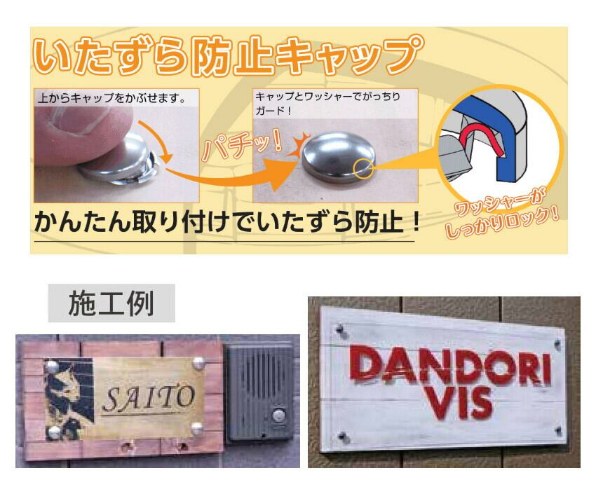 ・イタズラ防止に最適!ネジをキャップとワッシャーでがっちりガード!