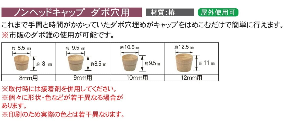 これまで手間と時間がかかっていたダボ穴埋めがキャップをはめこむだけで簡単に行えます。