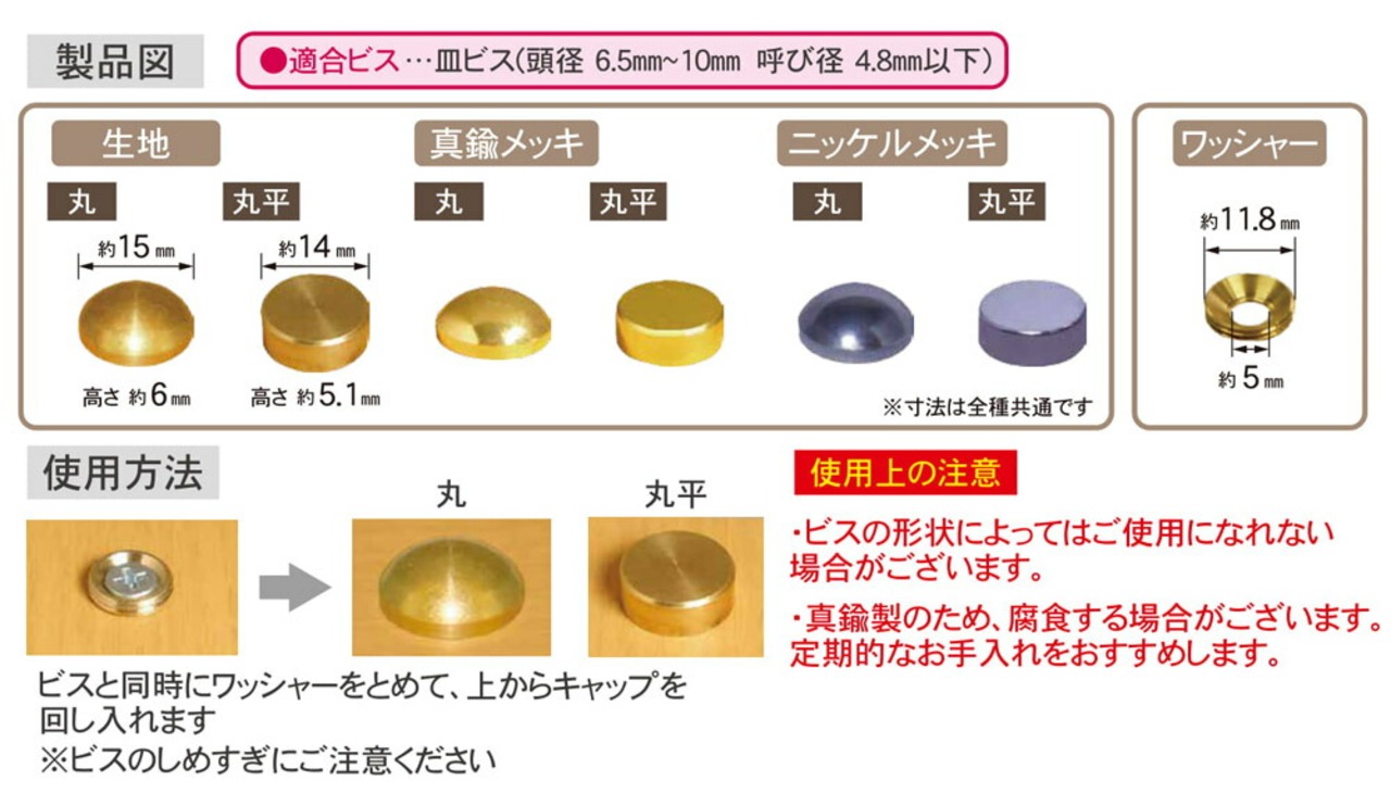 ・メッキの仕上がりは3種、形状は丸と丸平があります。