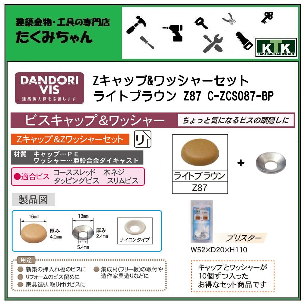 DANDORI VIS ダンドリビス Zキャップ&Zワッシャーセット ライトブラウン Z87 C-ZCS087-BP 各10個入 ブリスター