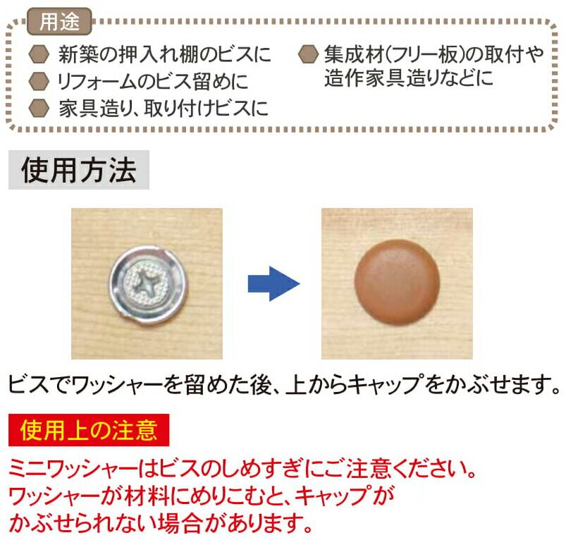 ・専用ワッシャー(別売)をビス留めした後に、上からかぶせます。