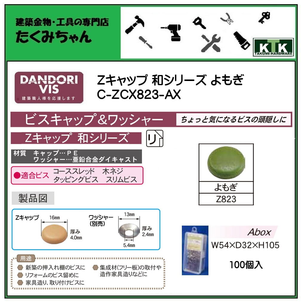 DANDORI VIS ダンドリビス ビスキャップ Zキャップ 和シリーズ よもぎ Z823 C-ZCX823-AX 100個入 Abox