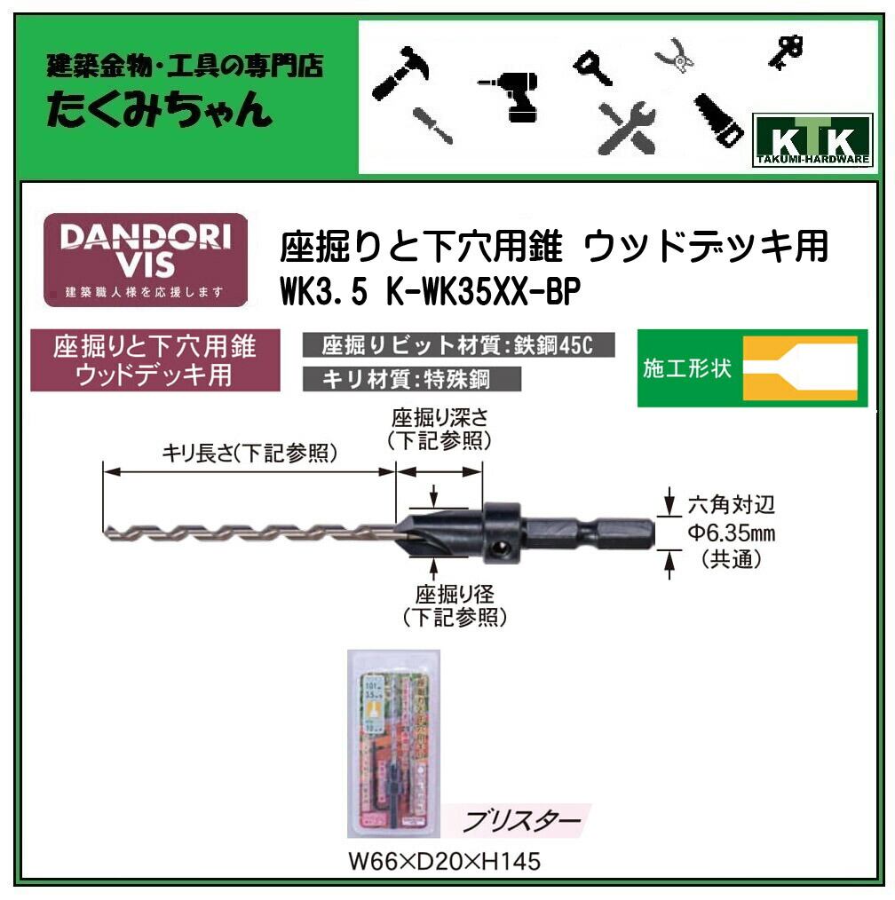 DANDORI VIS ダンドリビス 座掘りと下穴用錐 ウッドデッキ用 WK3.5 K-WK35XX-BP ブリスター