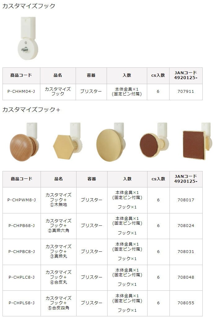 「カスタマイズフック」はビス留め、下穴処理不要のピンタイプで