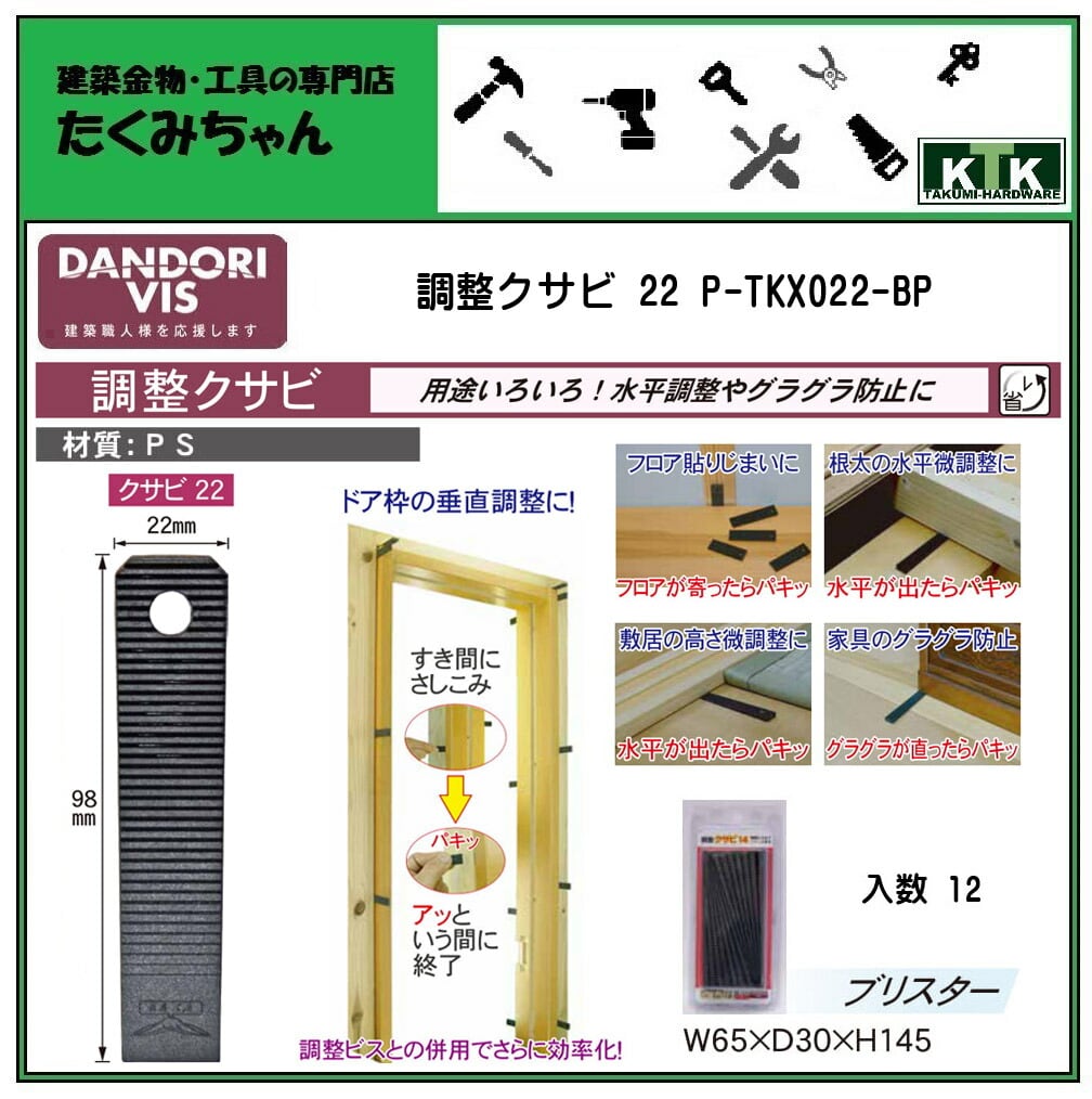 DANDORI VIS ダンドリビス 調整クサビ 22 P-TKX022-BP 入数 12 ブリスター