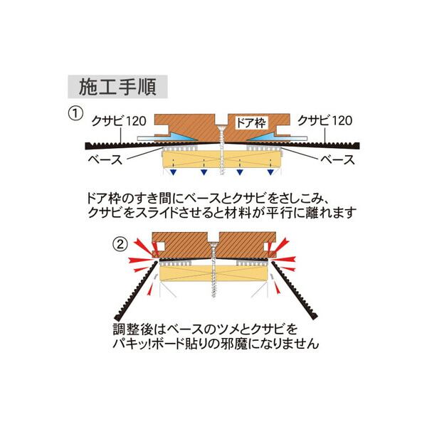 ドア枠のすき間にベースとクサビをさしこみ、クサビをスライドさせると材料が平行に離れます。