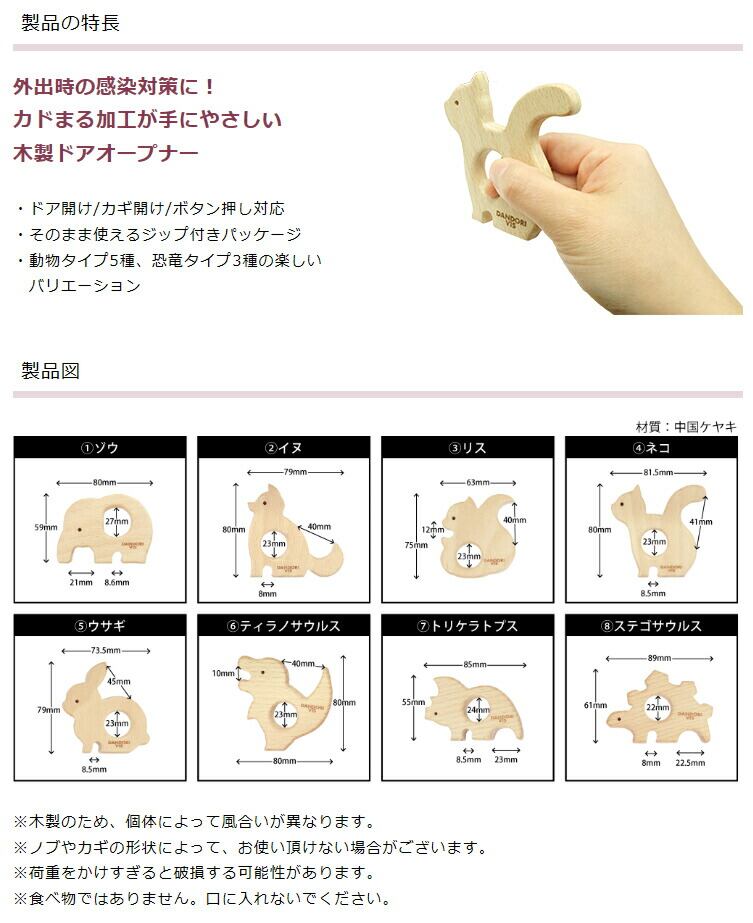 DANDORI VIS ダンドリビス 非接触ドアオープナー moku moku ふれんず 品番 S-HDWNKX-J 4 ネコ JANコード 4920125245048 材質 ケヤキ(中国) 仕上 手にやさしいカドまる加工 ドア開け/カギ開け/ボタン押し対応