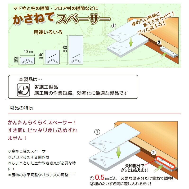 ●0.5mmごと、必要な厚み分だけ重ねて調整!