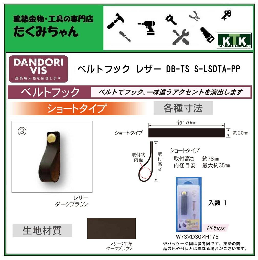 DANDORI VIS ダンドリビス ベルトフック レザー DB-TS S-LSDTA-PP 入数 1 PPbox