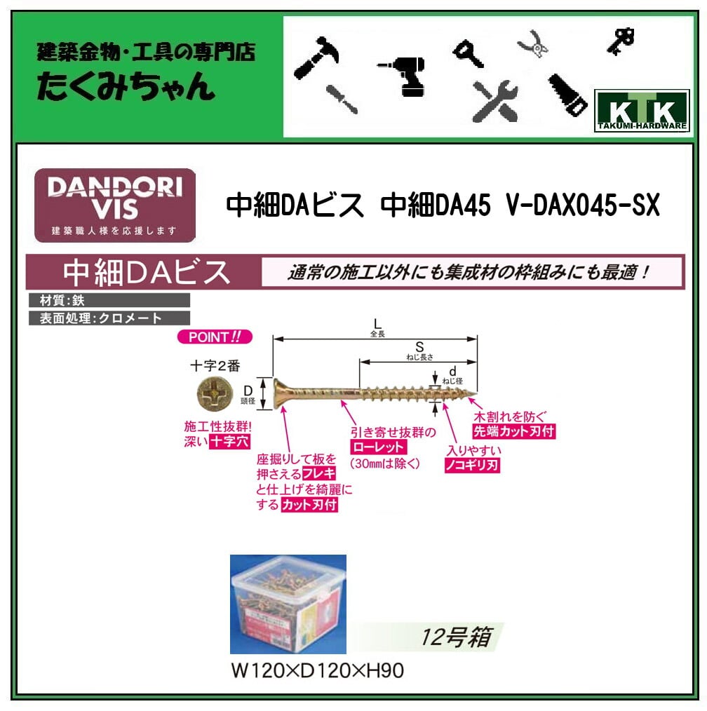 DANDORI VIS ダンドリビス 中細DAビス 中細DA45 V-DAX045-SX 415本入 12号箱 クロメート