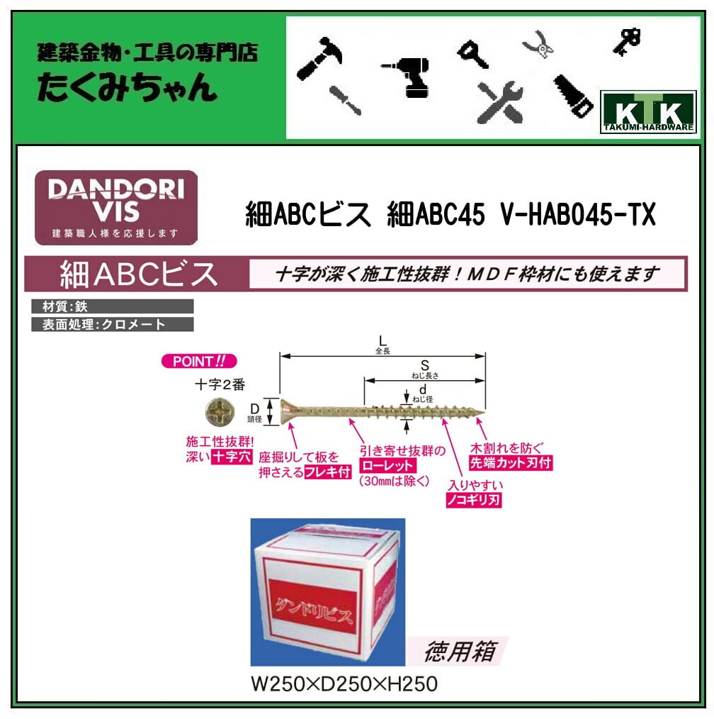 DANDORI VIS ダンドリビス 細ABCビス 細ABC45 V-HAB045-TX 5300本入 徳用箱 クロメート