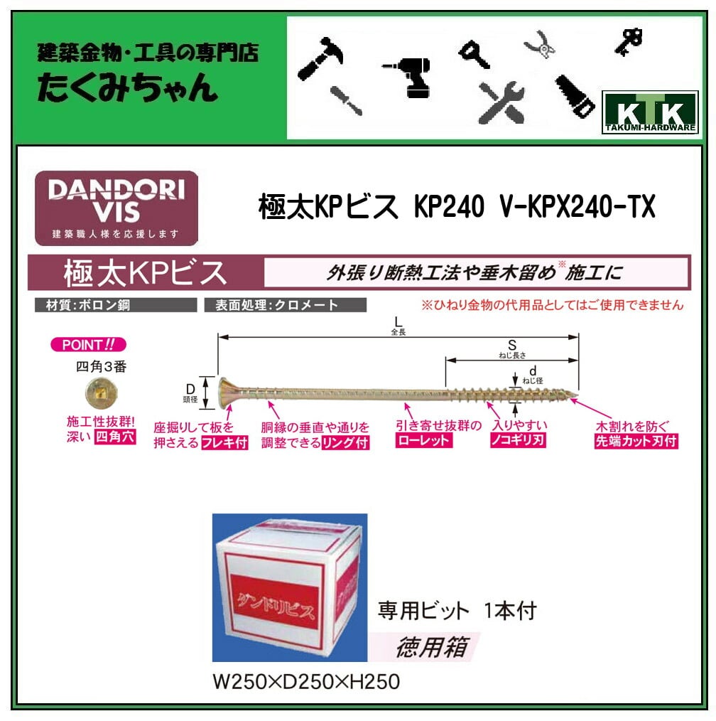 DANDORI VIS ダンドリビス 極太KPビス KP240 V-KPX240-TX 徳用箱 クロメート