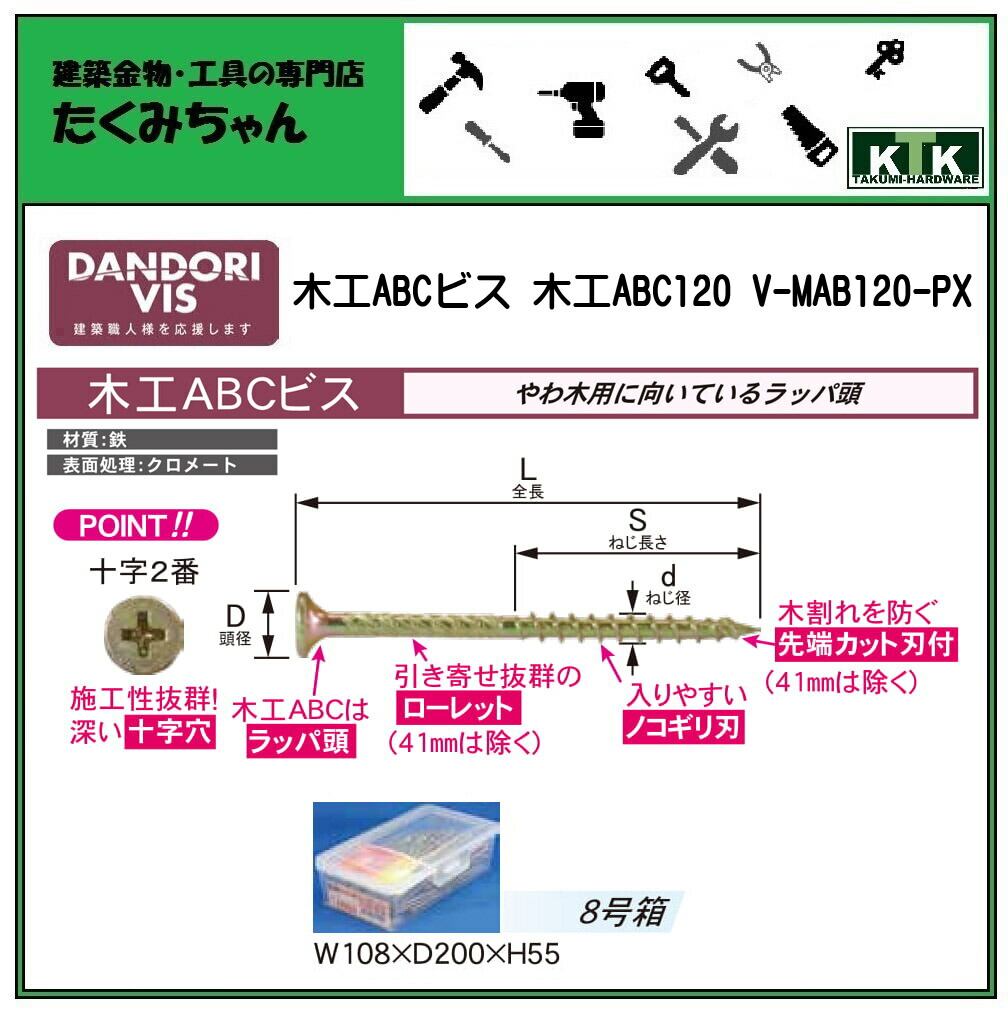 DANDORI VIS ダンドリビス 木工ABCビス 木工ABC120 V-MAB120-PX 114本入 8号箱 クロメート