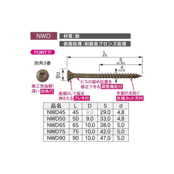 DANDORI VIS ダンドリビス ウッドデッキ材 専用ビス V-NWD050-SX 12号箱 四角3番 耐腐食 ブロンズ処理