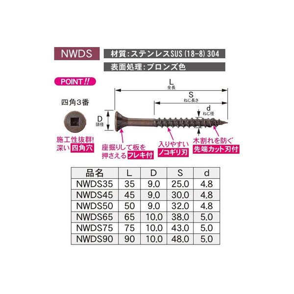 DANDORI VIS ダンドリビス ウッドデッキ材 専用ビス V-NWDS75-SX 12号箱 四角3番 ステンレス ブロンズ