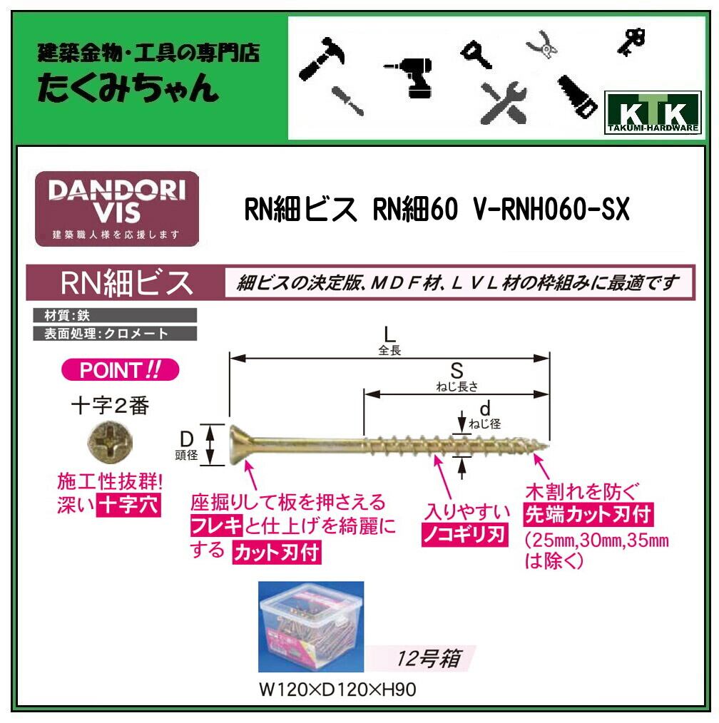 DANDORI VIS ダンドリビス RN細ビス RN細60 V-RNH060-SX 284本入 12号箱 クロメート