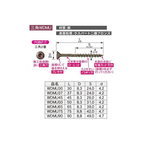 DANDORI VIS ダンドリビス ウッドデッキ材 専用ビス V-WDMU90-SX 12号箱 三角2番 ラスパート二種 ブロンズ